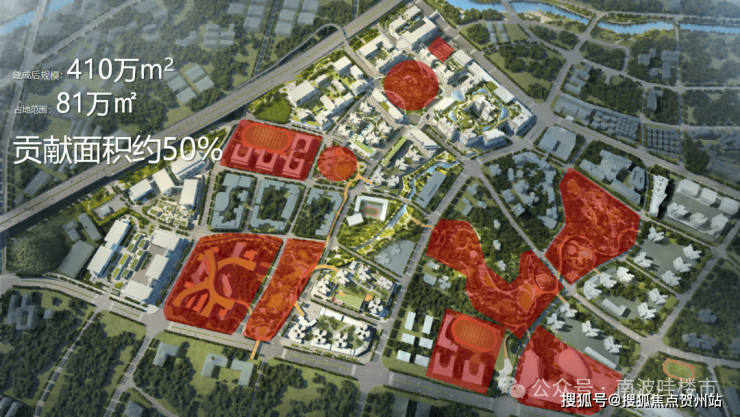 占地约81万㎡,总建面约410万㎡,涵盖住宅、商业、写字楼、产业、公园、历史文化、教育、医疗、康养等一体