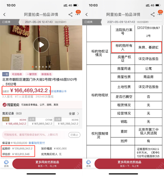 但2016年之后,这位金主爸爸不行了,2018年10月,綦建虹名下位于北京朝阳区的7处房产被查封。耀莱旗下的子午线通用航空开始甩卖飞机;几栋坐落在北京三里屯上万平方米豪华楼宇的幕后主人耀莱,也因巨额债务登上了全国1339万个“老赖名单”。同时,他持有的上市公司股权也被司法冻结。2021年5月,綦建虹在北京银泰中心柏悦府的两套豪宅被拍卖,拍出1.66亿!