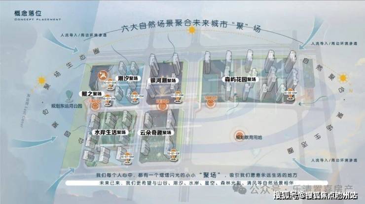 以山水相融为设计理念,结合金地玩呗2.0社区生活系统及360°健康家,融合架空层互动空间、街区景观、东运河沙滩公园(规划中)、滨海河湿地公园(规划中)等外部景观构建丰富的景观体系,打造森屿花园聚场、银河潮聚场、云朵奇趣聚场、潮汐聚场、水岸生活聚场及鲲之聚场六大生活聚场,让社区的每个人都是美好场景的参与者。