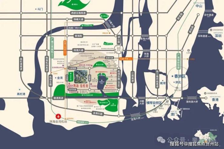 四橋:珠海大橋+洪鶴大橋+金海大橋(建設中)+香海大橋 ,20分鐘直達橫琴,30分鐘到市區 ,30分鐘抵澳門,1小時達香港,貫通粵港澳大灣區。