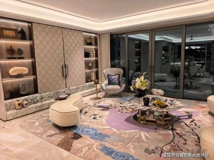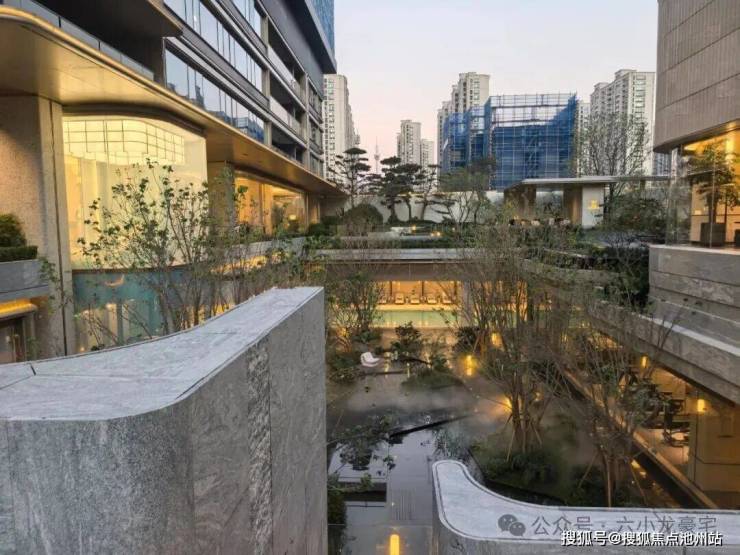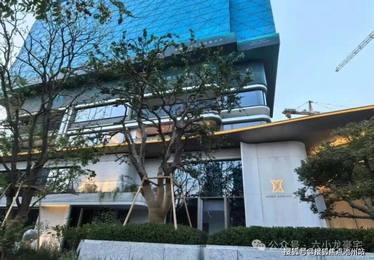 外立面:高层以大面积玻璃搭配金色线条,叠墅采用流线型曲面设计,整体呈现“漂浮水岸”的视觉效果
