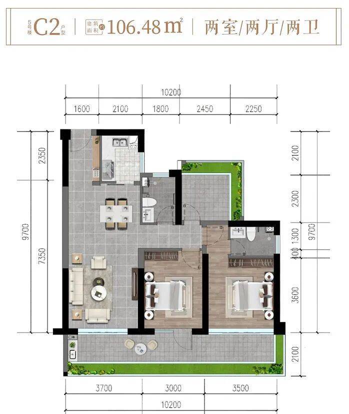 ✨ 6楼C户型约93㎡舒阔两房两厅两卫