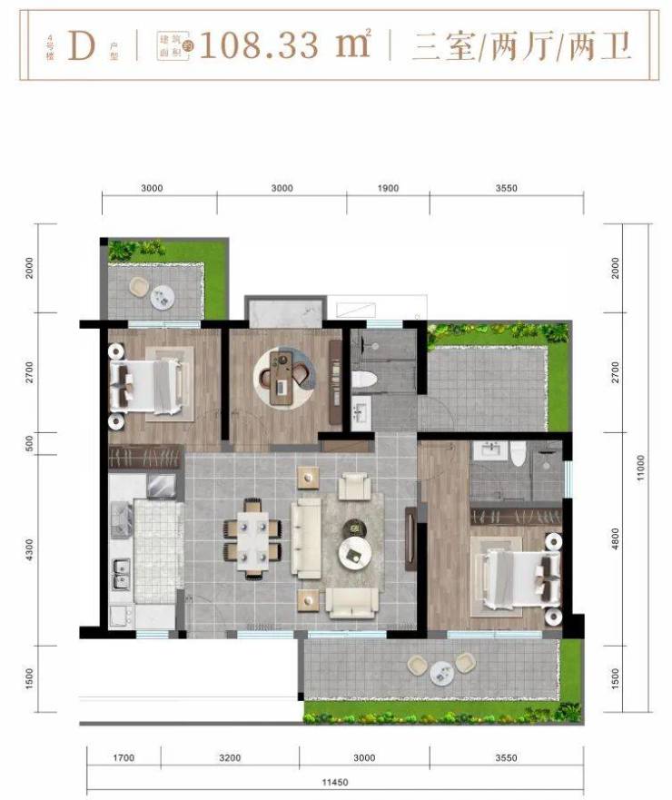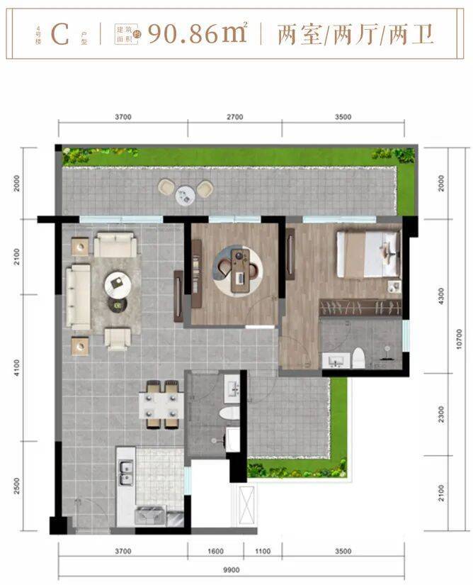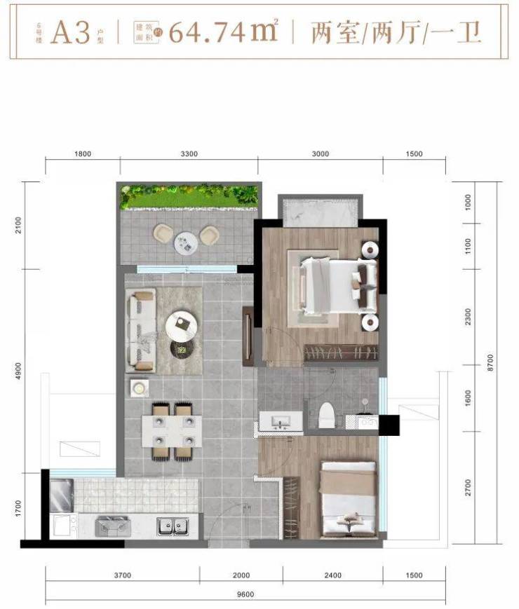 轩朗舒适、高使用率全明户型,约10米面宽的景观阳台,横跨双卧一厅,开阔的起居空间,视野通达,纵享无边美景。私享多功能阳台,自由变换,拥有更多空间惊喜。
