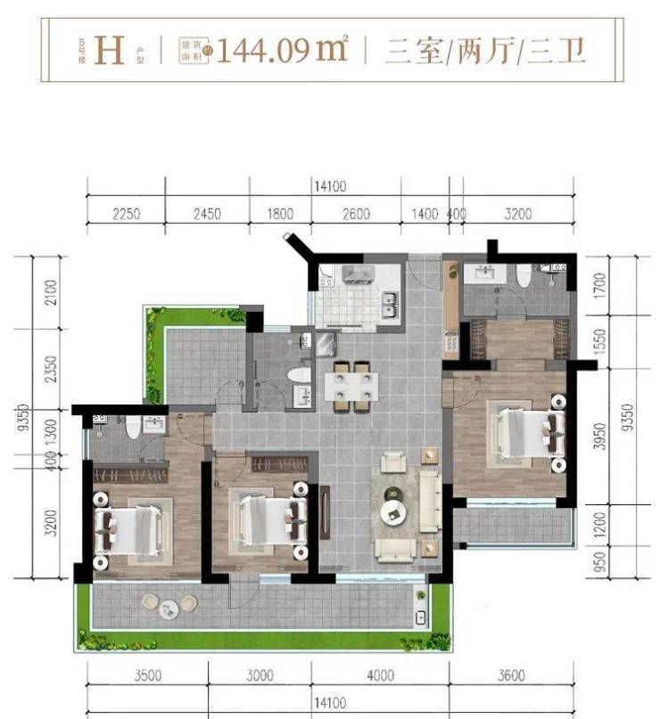 全景户型,大面宽全景观空间布局,餐客厅轩朗开阔,三阳台臻稀户型,艺术空间组合序列,人性化精析设计,纵享更多起居空间。