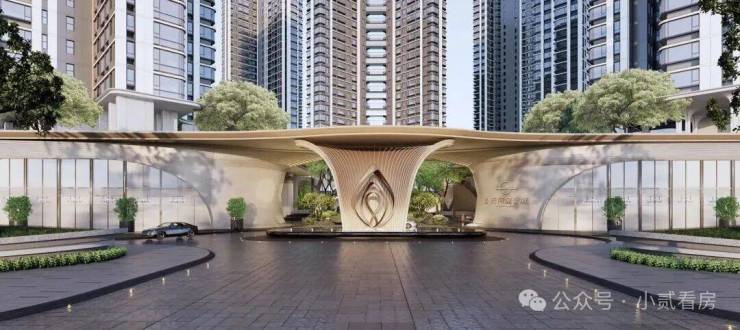 约60米恢弘高门大气开场,将辨识度和仪式感直接拉满。酒店式环岛落客区,让每一次归家犹如一趟轻度假,给予业主满满情绪价值。