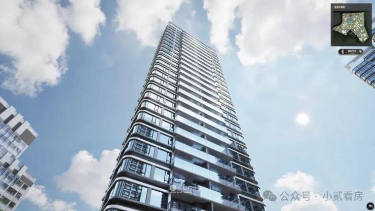 譬如小区容积率约3.0,楼栋全系南向分布,且每一户扭转45°角,形成四边位采光。