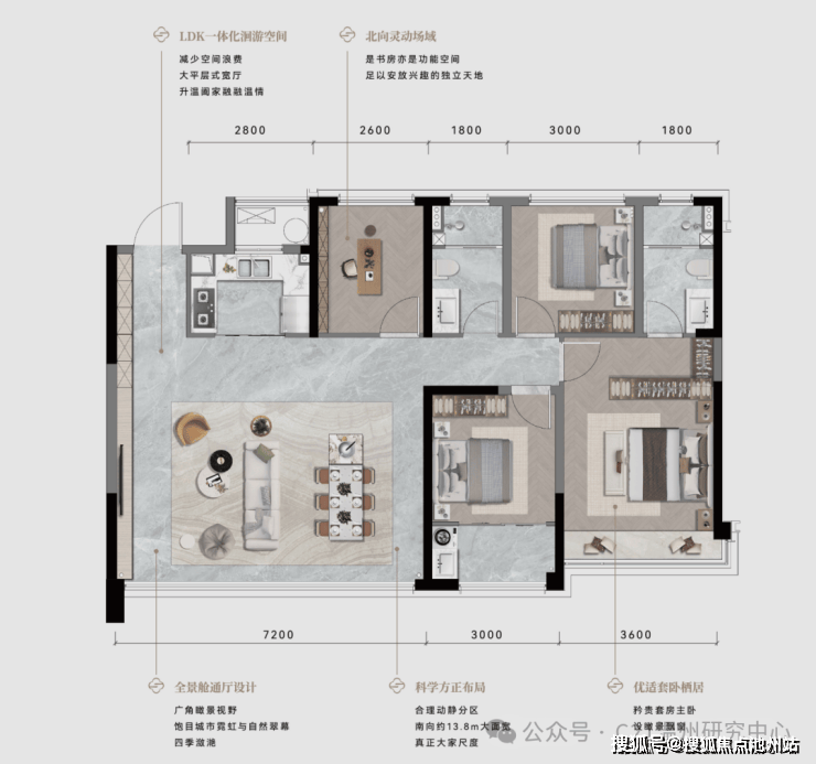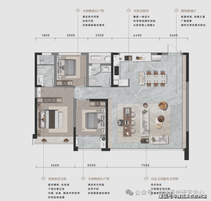 南向直面中央园林、度假酒店风情戏水池以及下沉庭院。这种“公园在家楼下,家在公园里”的体验,在城中近乎绝版。