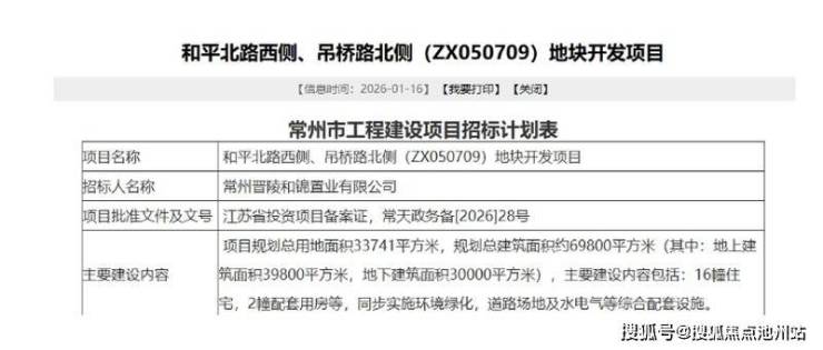 近期,根据常州公共资源交易网发布的信息显示,和平北路西侧、吊桥路北侧(ZX050709)地块开发项目招标计划正式发布。
