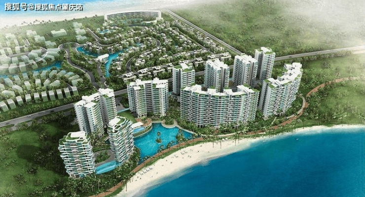 建筑布局:已动工的滨海大道西延线将项目划为南北两区,北区为 238 套独栋别墅,南区为小高层公寓,临海设置五星级酒店。