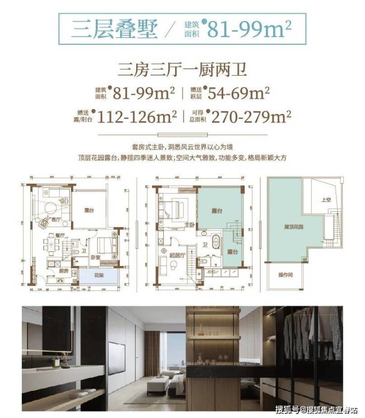 打造「地上院落 + 空中露台 + 私属空间」三重立体格局。晨起在庭院栽花种草,午后于露台品茗会友,入夜在星空下泡池观星,垂直生活剧场里,每一层都是独属的生活诗篇。
