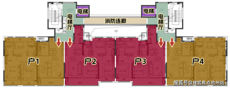 西端交通核配两户,分别是建筑面积约137㎡边户、119㎡中户;东端交通核配一户,为建筑面积约138㎡。