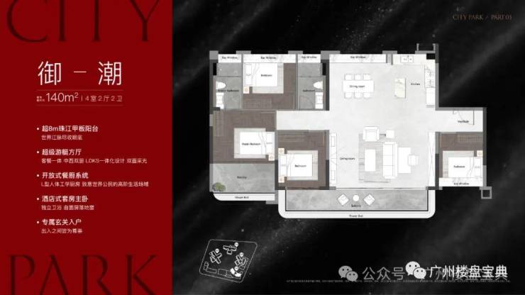中国铁建•西派粤府位于广州城市新中轴,与珠江相邻,享有南向江景,稀缺且独特。项目占地约1.75万平方米,建筑面积约5.88万平方米,规划包括4栋16-25层的建筑,由中国铁建打造。户型主要为建面约120-140平方米的四房单位,采用西派金铜打造的立面设计,体现了珠江的精神。项目采用围合式布局,拥有一线江景,打造城市中心的低密度住区。