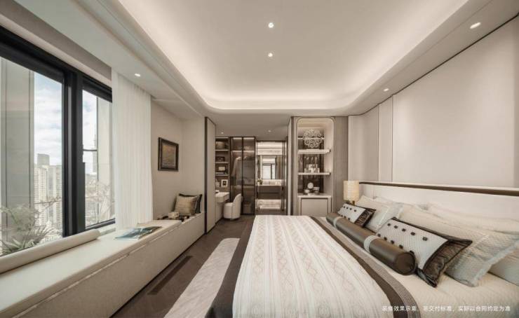 主卧衣柜专门设计珠宝指纹保险柜,独立衣柜可打造成为奢侈品专属包柜,极具奢华感与现代感,集高科技与安全性于一体。