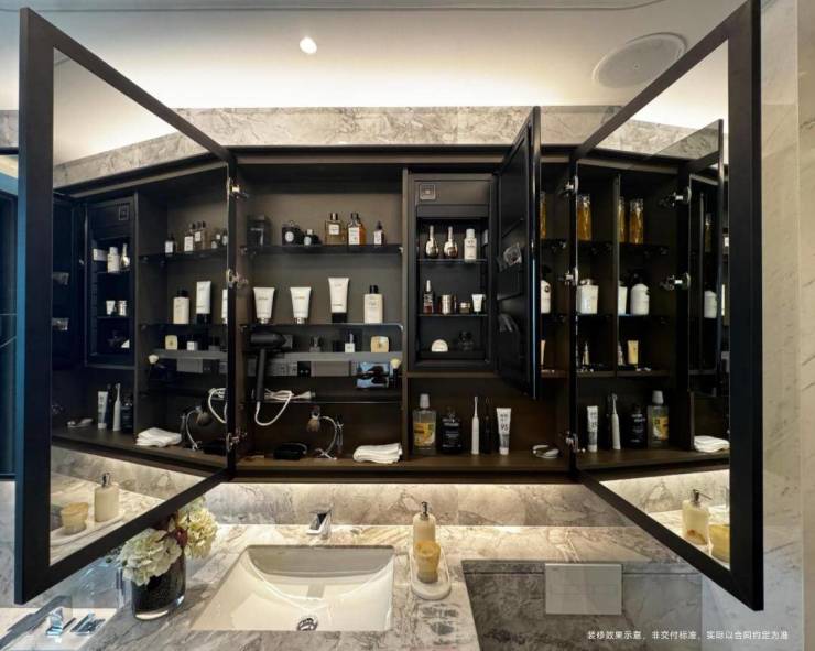此外,璞元亦贴心为女人带来极致呵护,镜柜内置美妆恒温冰箱,提升女主人护肤及化妆的舒爽体验感。