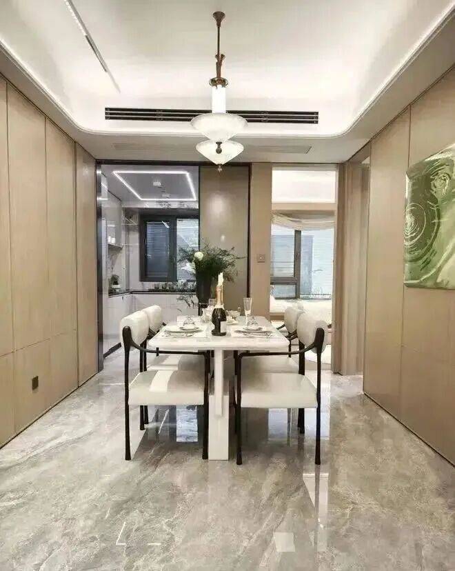 :全屋搭载中央空调、地暖、新风系统,厨卫选用方太、科勒等一线品牌,公共区域石材铺装,细节彰显国企精工;