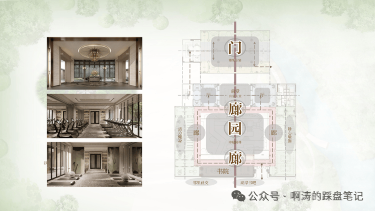 ▸打造“中天门庭”会所空间,通过三重空间序列(门-廊-院)营造礼序归家动线