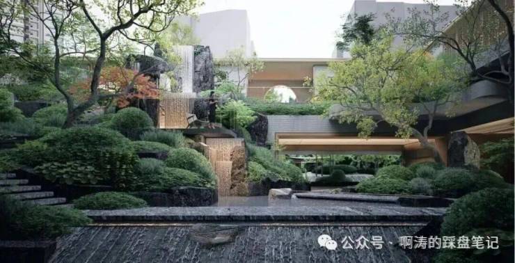 ▸融合“余荫山房”造园精髓以及“书香文雅”的书院规制,打造以水居中,环水建园的新中式岭南风园林