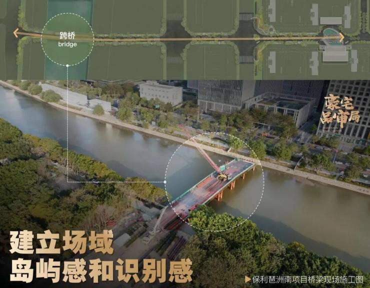 项目地块实景图,距离琶洲会展仅一桥之隔,直线距离约400m。
