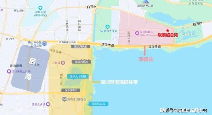 而整个深圳湾,大致由三大部分组成:深超总、后海、沿深圳人才公园-深圳湾公园的滨海居住带。