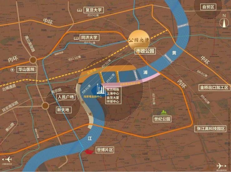雄踞上海浦西内环旁,南靠北外滩,距离黄浦江岸约3.5公里15分钟车程直达陆家嘴商务中心