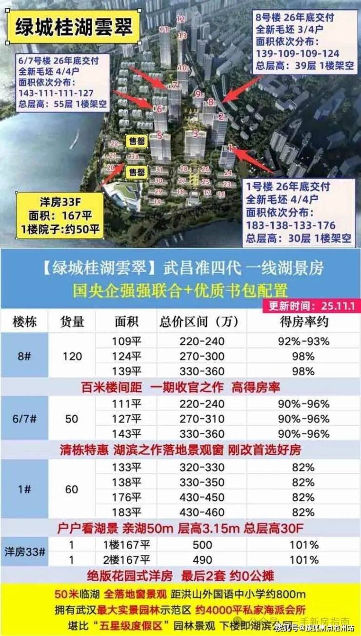武昌二环的湖居资源有多稀缺?懂行的朋友都知道,能一线临南湖还带品牌加持的盘,简直是 “闭眼抢” 的节奏!作为绿城武汉首个月华系作品,桂湖云翠刚亮相就刷屏朋友圈,实探后发现它真的把 “湖居 + 改善” 玩明白了,今天就带大家扒透这款热门盘的方方面面~