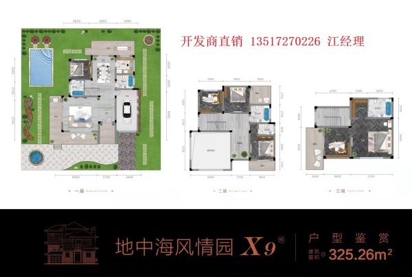 地中海风情园庄园别墅,建面:350㎡—450㎡之间,总占地在800㎡—1500㎡之间,