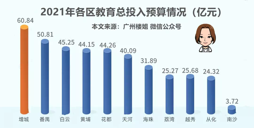 根据楼姐数据分析,2021年增城教育总投入预算,达到了60.84亿,位居全市排名前列。在接下来,增城会有大批的财政支出,涌入教育领域,提升其配套。