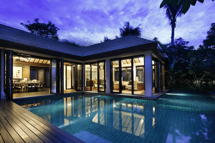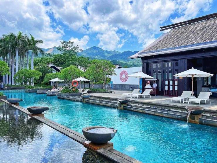 别墅中的小型海。香水君澜户户私家泳池,无边无际的泳池似乎可以游到海的另一边。晨起,朝着波光粼粼纵身一跃。傍晚,在水边看夕阳,暗香浮动,心已动,人已醉。