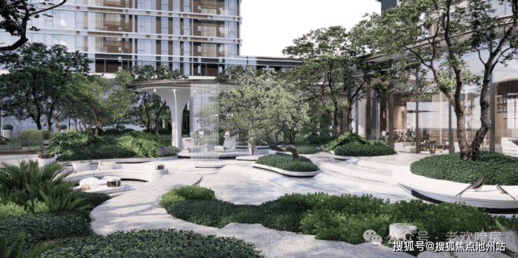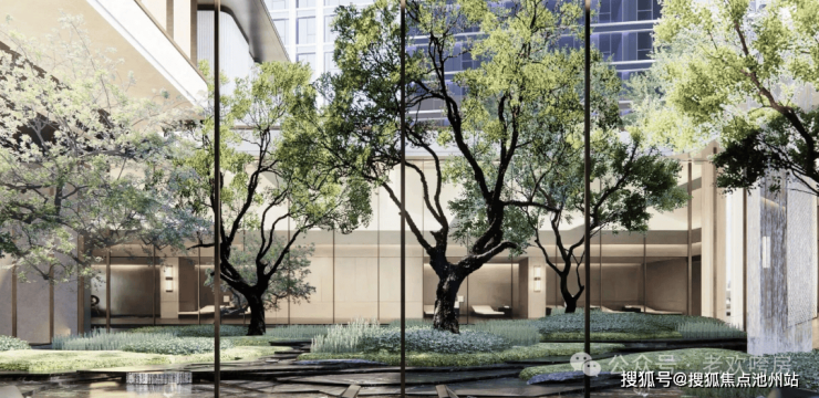 5、项目是内环少有的低密社区,容积率约为 2.82,全盘采用一梯一户设计,还规划打造了约70米的恢弘大门,下沉式庭院和会所、泳池等公共空间,根据“叠山理水,以画入园”的理念,打造立体式园林;