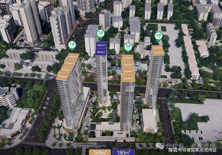 其中四栋住宅中,1号楼总高31层,首层为养老用房;2号楼总高32层,首层架空;3号楼总高31层,首层架空;4号楼总高31层。