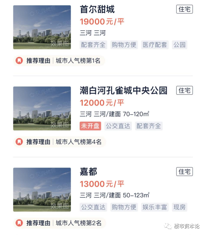 在热卖的几个燕郊新盘房价则在1.2-1.9万元/平米。