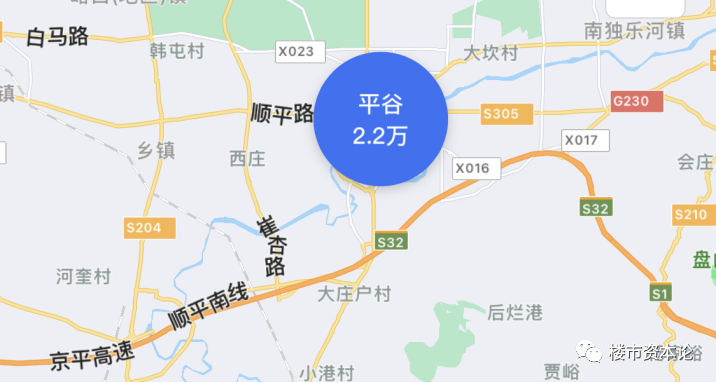 以22号平谷线所经过的区域房价看