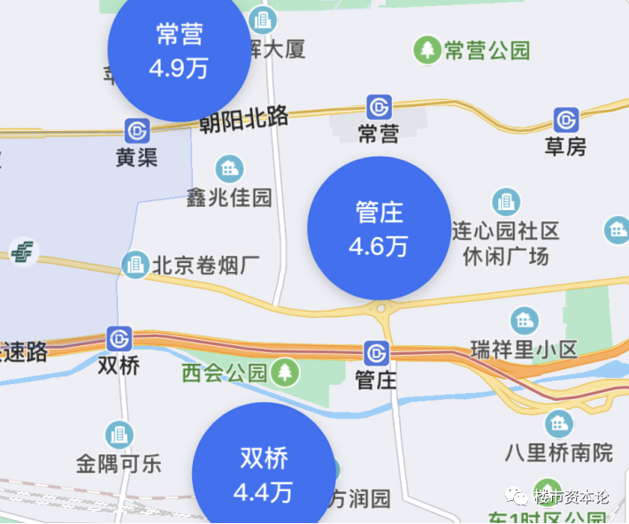到了朝阳区最东边,与通州挨着的管庄区域二手房房价在4.6万元/平米。