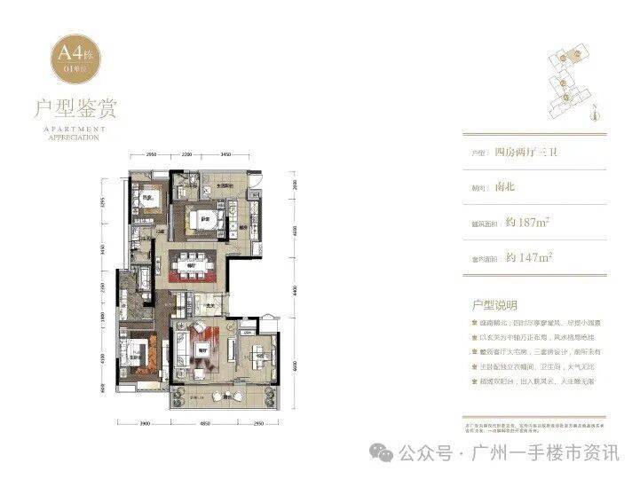 这次推出的住宅主要为A4栋大面积户型,主要户型为188㎡和193㎡南向现楼四房,基本都是20楼以上的高层单位,目前仅剩下最后一套顶楼188㎡大平层四房户型,单价5.4万左右/㎡毛坯现楼出售,对比现在二手相同户型在售的7.5-9万/㎡,这套188㎡现楼单位的性价比非常高。