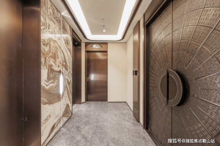 尊崇高定大堂,精研艺术与生活交融之美,雕琢金属与石材材质的自然奢华,营造艺术感的归家体验,遇鉴居者精奢高雅的审美。