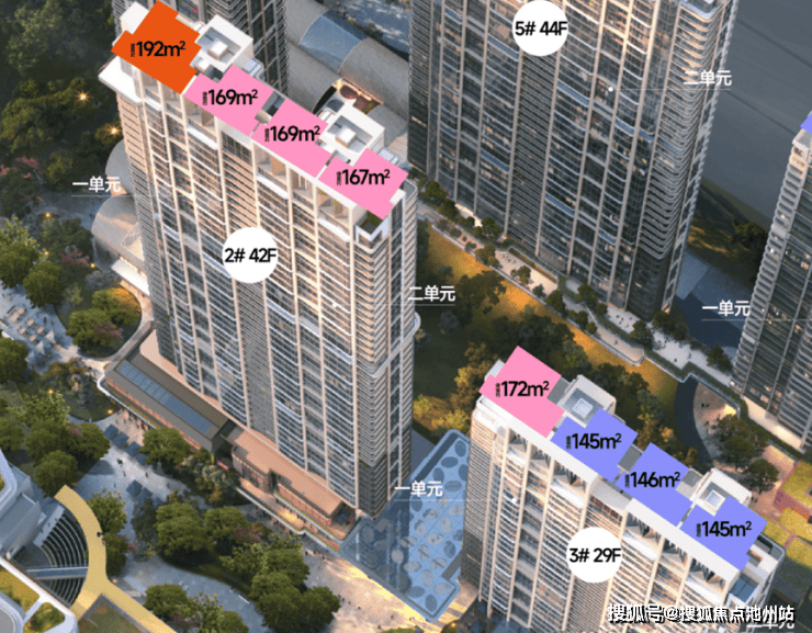 项目预计首推的是2、3号楼,其中2号楼42层,2个单元,2梯2户,西边为1单元,东边为2单元,户型从西至东分别是192平,169平,169平,167平。3号楼靠近唐家墩路,共29层,也是整个地块唯一的普通高层楼栋,也是2个单元,2梯2户,从西至东依次是172平、145平、146平、145平。