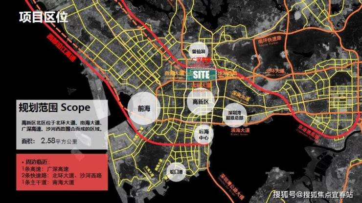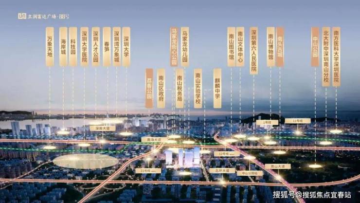中国科创看深圳,深圳科创看南山,深圳市6+1总部基地,南山区独占4+1,项目毗邻深圳湾高新区总部基地,前海合作区,后海、深圳湾、留仙洞总部基地环绕,战略高地围合,智领深圳价值中芯