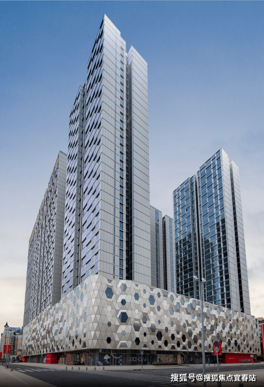 悬挑约16米的水滴造型,演绎自然灵动,独特、大小不等的六边形设计,与城市光影律动,呈现不同光韵和色彩,犹如璀璨迷人的“万花筒”视觉盛宴,筑造城市建筑美学新范本