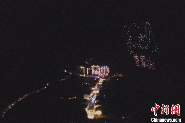 300架无人机在曾家镇汉王老街上空组成“曾家山”图案。 苗志勇 摄