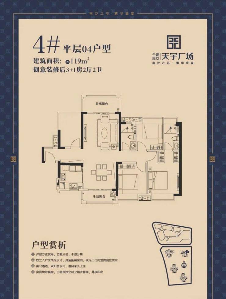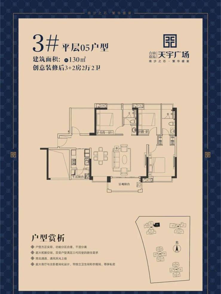 在售平层:3栋、4栋:105-131㎡(三房~五房)
