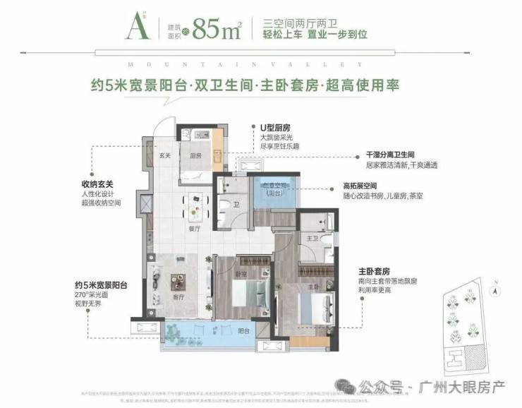 85㎡ 3房2厅2卫,南向3房带主套设计,生活更随心