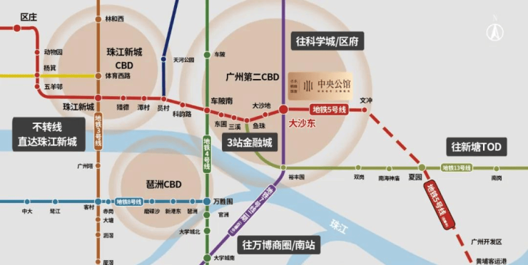 5号线——3站天河金融城,约26分钟直达珠江新城不换乘