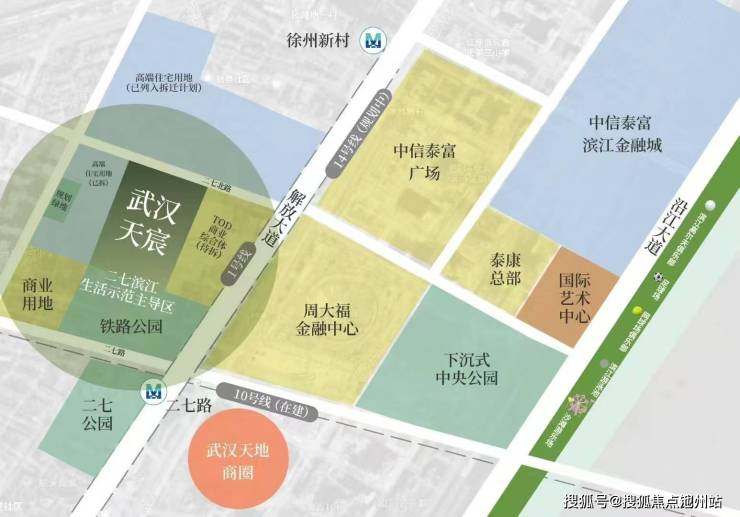 周边直线3km范围内有11个地铁站(二七路、徐州新村、二七小路、头道街、罗家庄、丹水池、兴业路、赵家条、黄浦路、后湖大道、百步亭花园路),轨道交通发达,距离最近的地铁站是二七路。