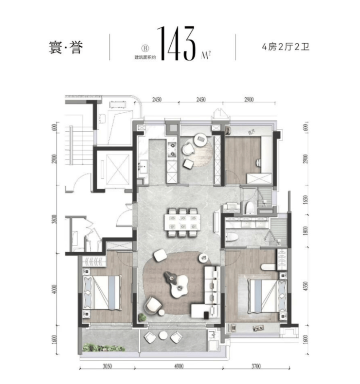 建面约125-128-143-160㎡4房