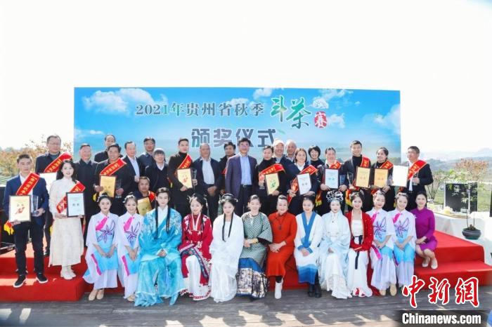 中新网贵阳11月10日电 (记者 张伟)2021年贵州省秋季斗茶赛颁奖仪式10日举行,154支茶样经过一系列评审等最终诞生出“四大茶王”。记者从活动中获悉,官方将把贵州绿茶打造成享誉世界的“金字招牌”、乡村振兴的“样板产业”、推介贵州的“靓丽名片”。