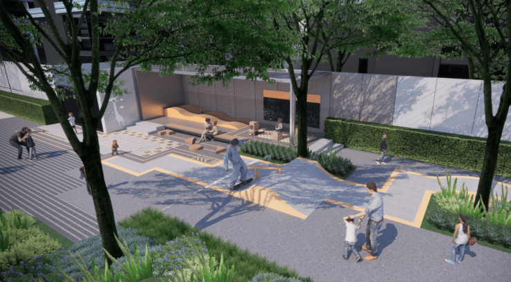 可以看到,开发商打破社区边界,营造边界模糊、功能融合的生活场景,让业主、让周边的居民在归家路途有更多的场景变换、更温暖的街道。