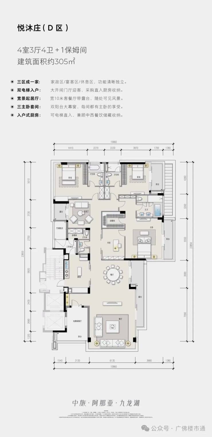 🏠D区户型图(建筑面积约305㎡):