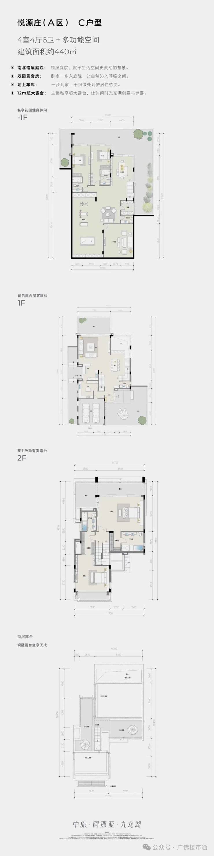 🏠A区-C户型图(建筑面积约440㎡):