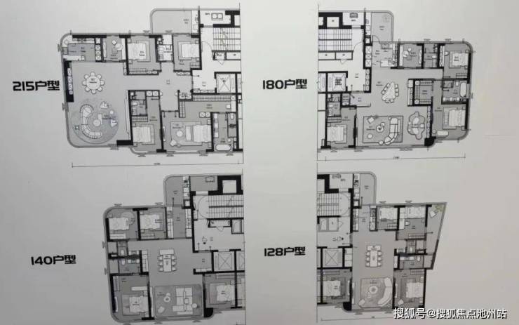 小梅也第一时间搞到户型图,面积段128、140、180、215四个户型,户型图如下 ,具体还是以官方为准。