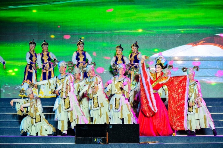 伴随着激昂的大型鼓乐,号角声战鼓声雷动,狼烟四起,金甲战士披风上阵,象征着希望之火、奋进之火、复兴之火、和谐之火的烽火熊熊燃烧,正式拉开了旅游节序幕。随后,文明传承·爱我长城旅游文化嘉年华开启。整场晚会以朔州历史悠久的长城文化为支撑,分“望长城”“念故乡”“华夏梦”三个篇章,通过“音、舞、诗、画”相结合的形式,现场演绎了《望月怀远》《昭君出塞》《长城》《华夏颂》等精彩节目,集中展现了塞北风情和中秋团圆的家国情怀。